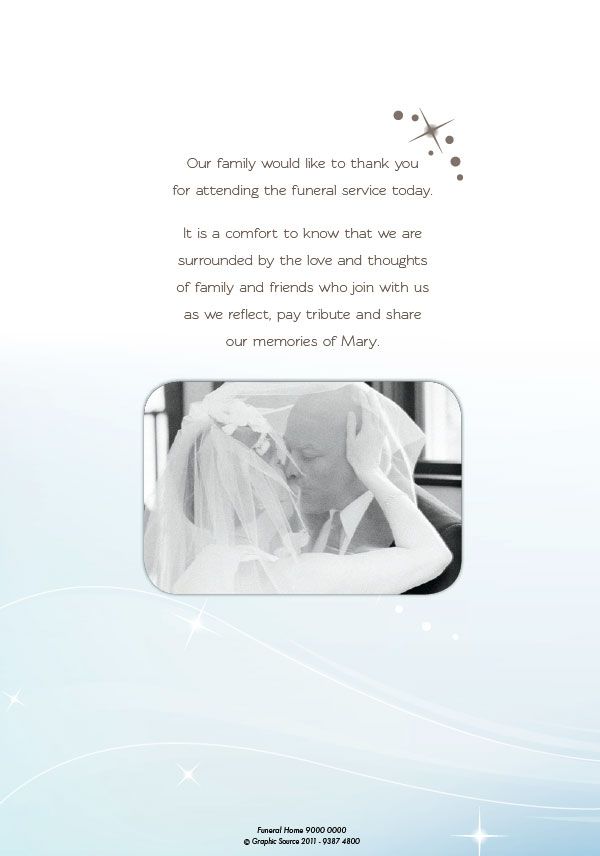 . Please ensure they are supplied at least 48 hours prior to the funeral date and quote the deceased's name in the subject of your email.