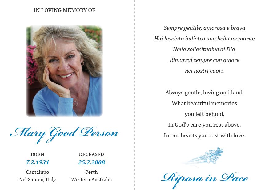 . Please ensure they are supplied at least 48 hours prior to the funeral date and quote the deceased's name in the subject of your email.
